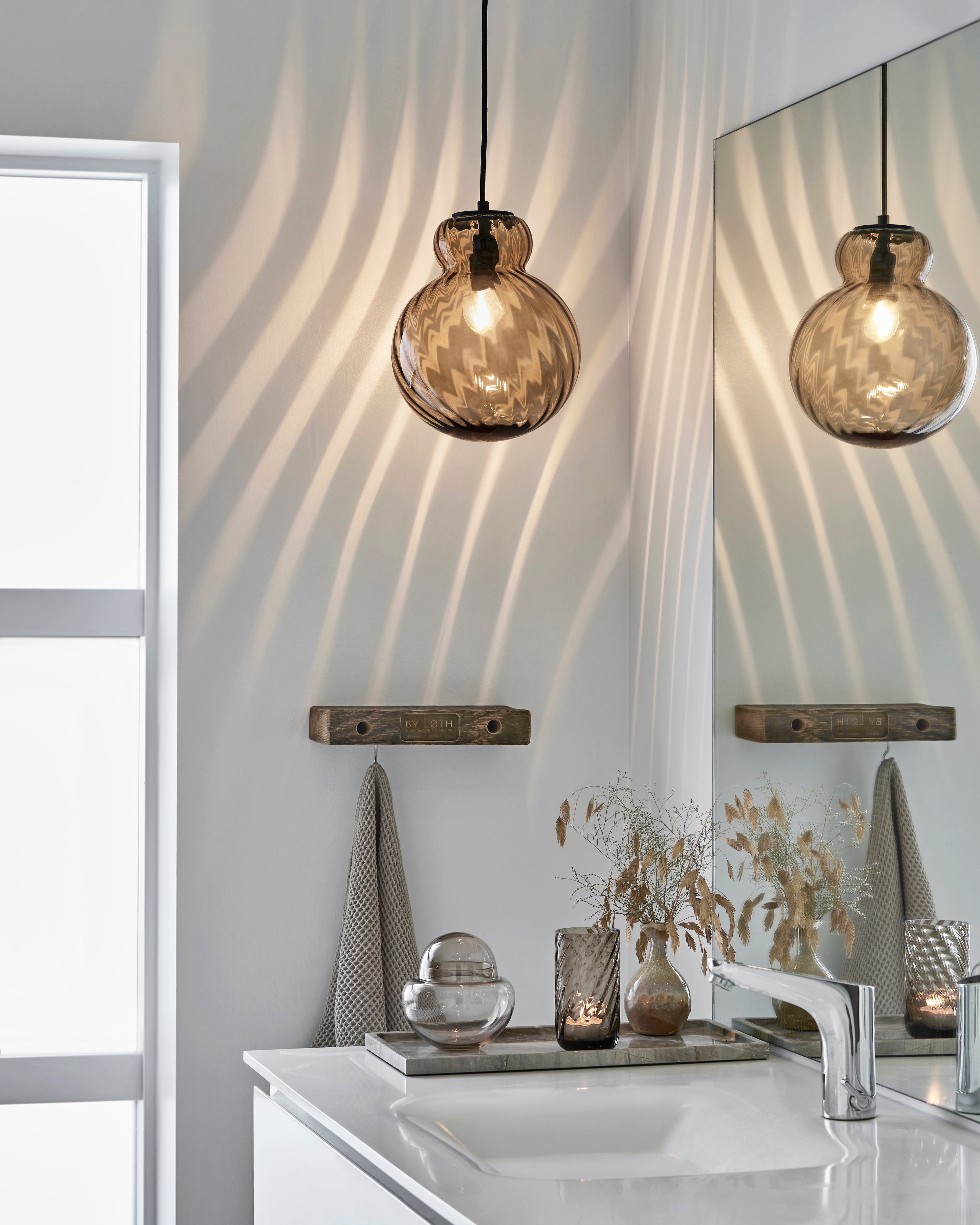 Den rette belysning er uundværlig på badeværelset. Med Specktrums badeværelseslamper kan du kombinere funktionelt arbejdslys med blød belysning, der skaber en afslappende stemning. Vælg en mundblæst pendel i glas for et elegant udtryk, eller tilføj væglamper ved spejlet, så du får det perfekte lys til dine daglige rutiner. Når lyset rammer spejlet og rummets detaljer, skabes en følelse af ro, der inviterer til fordybelse. På den måde bliver selv de mindste øjeblikke – fra morgenritualer til aftenens afslapning – en del af en sanselig oplevelse.