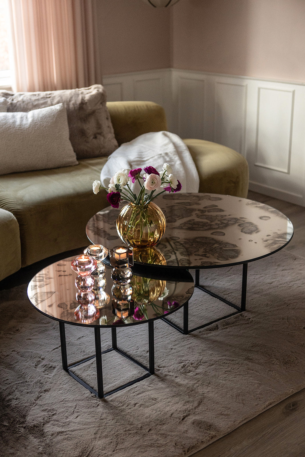 Et sofabord eller sidebord er ikke kun praktiske, men også dekorative elementer i stuen. De kan bære en smuk vase med kunstige blomster, en buket eller enkelte stilke, som hurtigt giver rummet et frisk pust. Du kan også bruge bordene til lysestager med levende lys, bøger eller små dekorationer. Specktrums borde er designet til at understøtte både hverdagens funktioner og personlige udtryk.