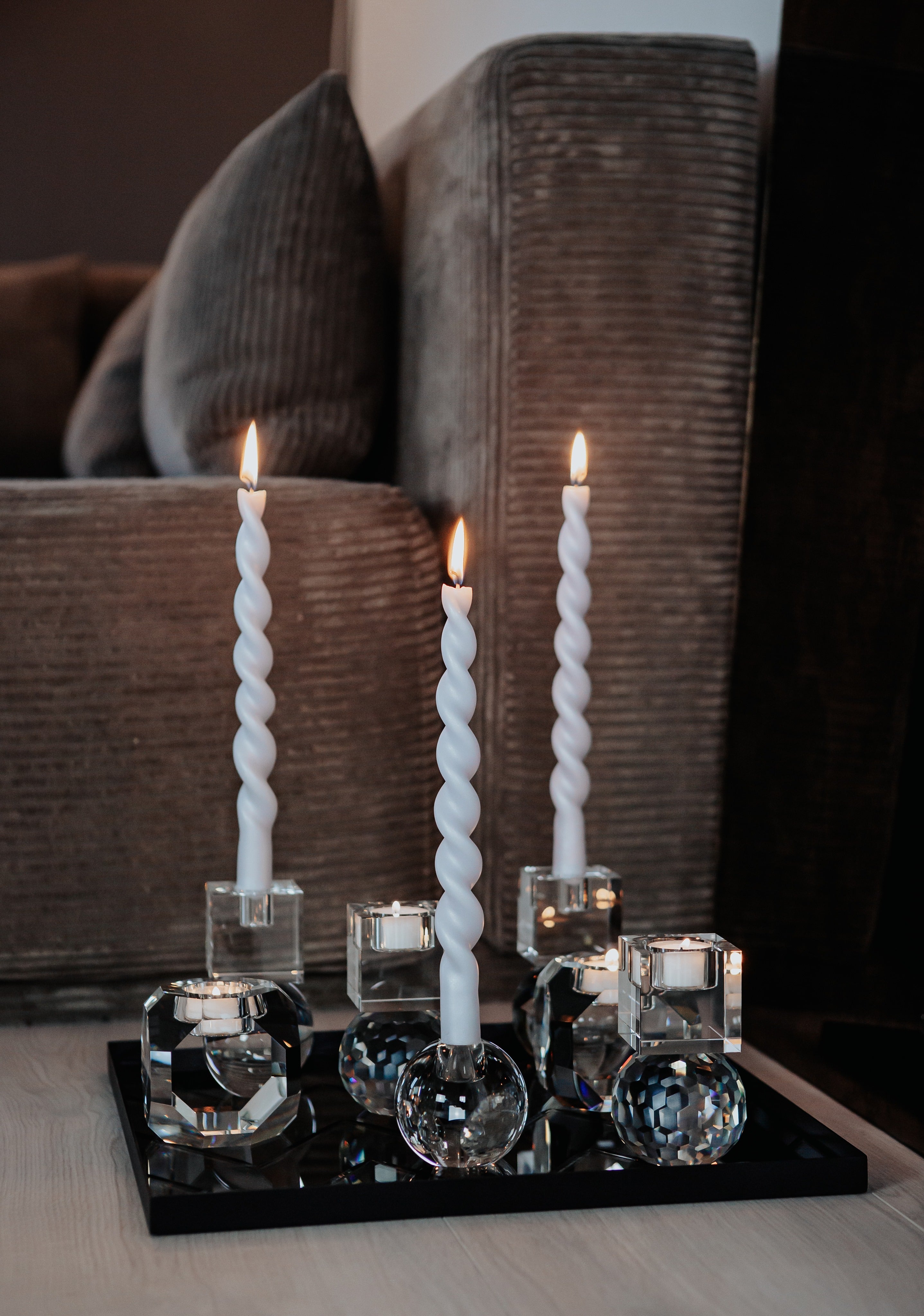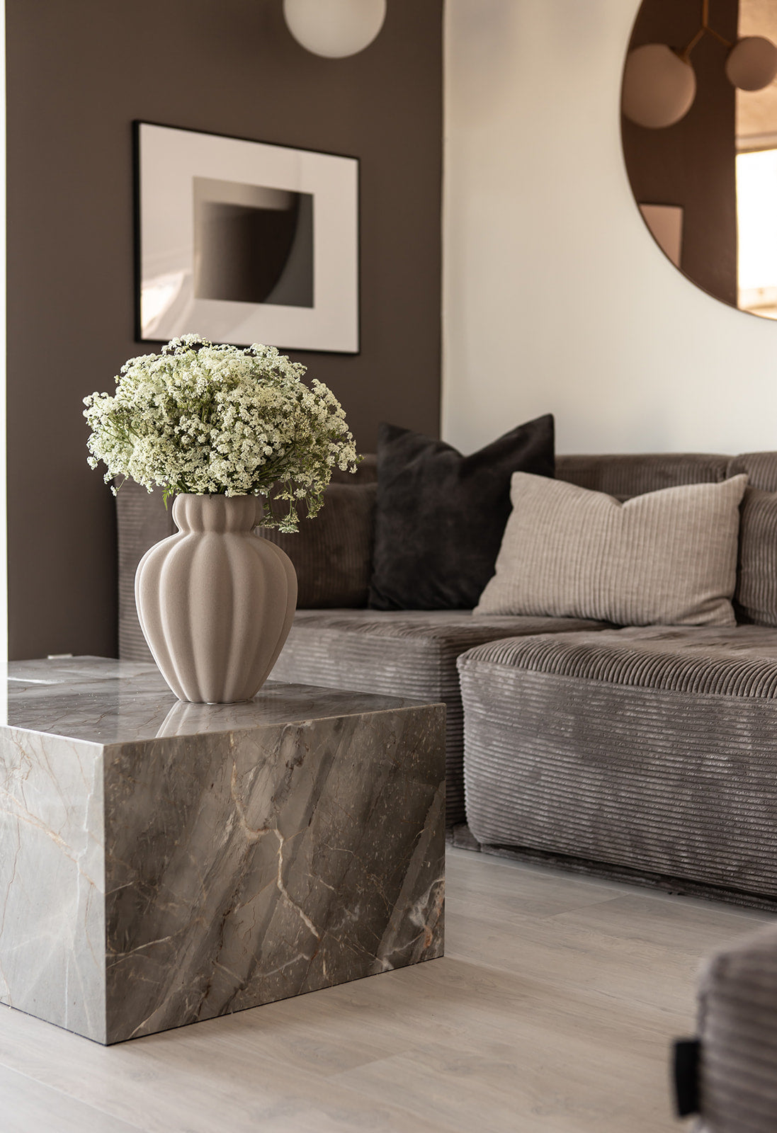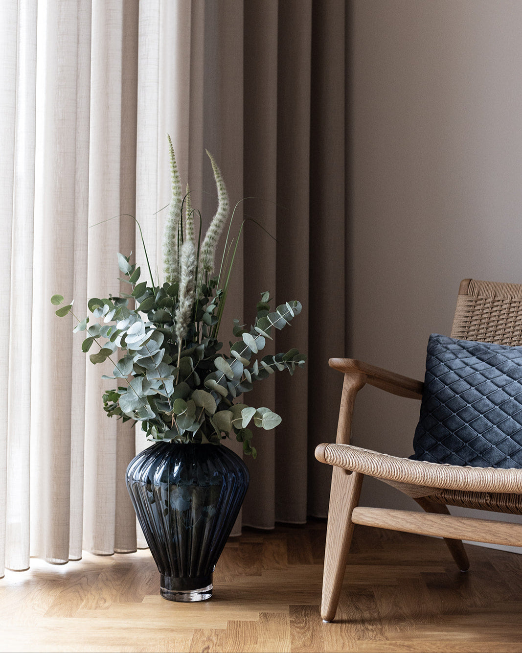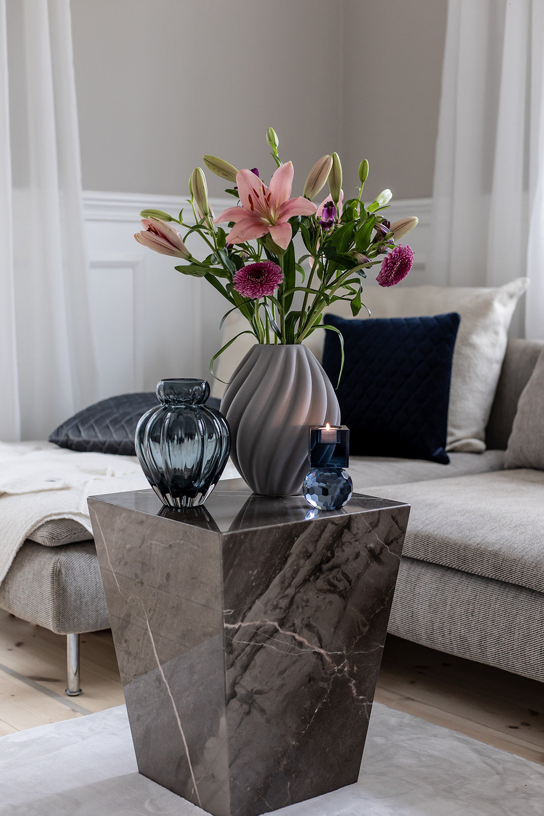 Det er ofte de små ting, der binder indretningen sammen. En dekorativ bakke kan samle lys, glas eller en vase på sofabordet, mens en lanterne i hjørnet tilfører stemning. Vælg en farvet vase eller en skulpturel form for at skabe blikfang, og lad kunstige blomster eller buketter give liv uden vedligeholdelse. Når du kombinerer Specktrums kollektion på tværs af farver og materialer, kan du skabe en stue, der føles både harmonisk og personlig.