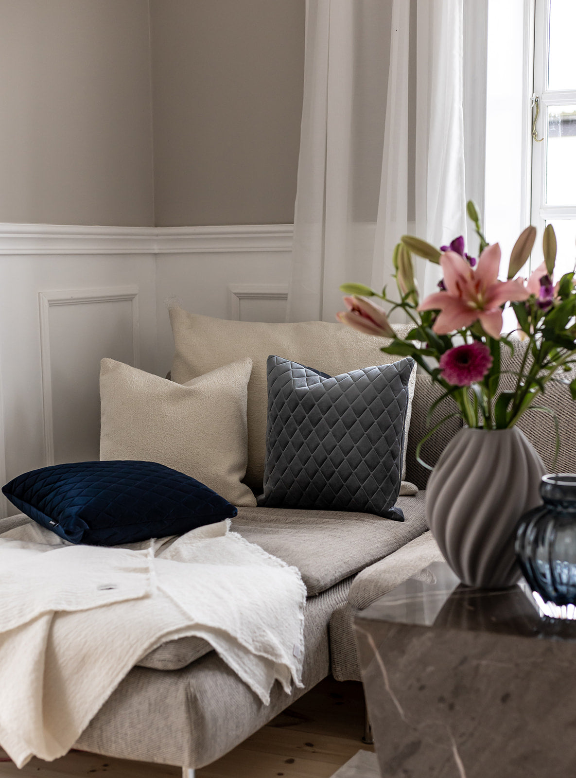 Store puder, pyntepuder og sofapuder giver dybde og komfort til sofaen. Vælg blandt nuancer som blå puder, grå puder, beige puder, grønne puder og hvide puder, og kombiner dem for at skabe et levende udtryk. Supplér med en blød plaid, der både tilføjer tekstur og inviterer til afslapning på kolde aftener. På den måde bliver sofaen et naturligt midtpunkt for samvær.