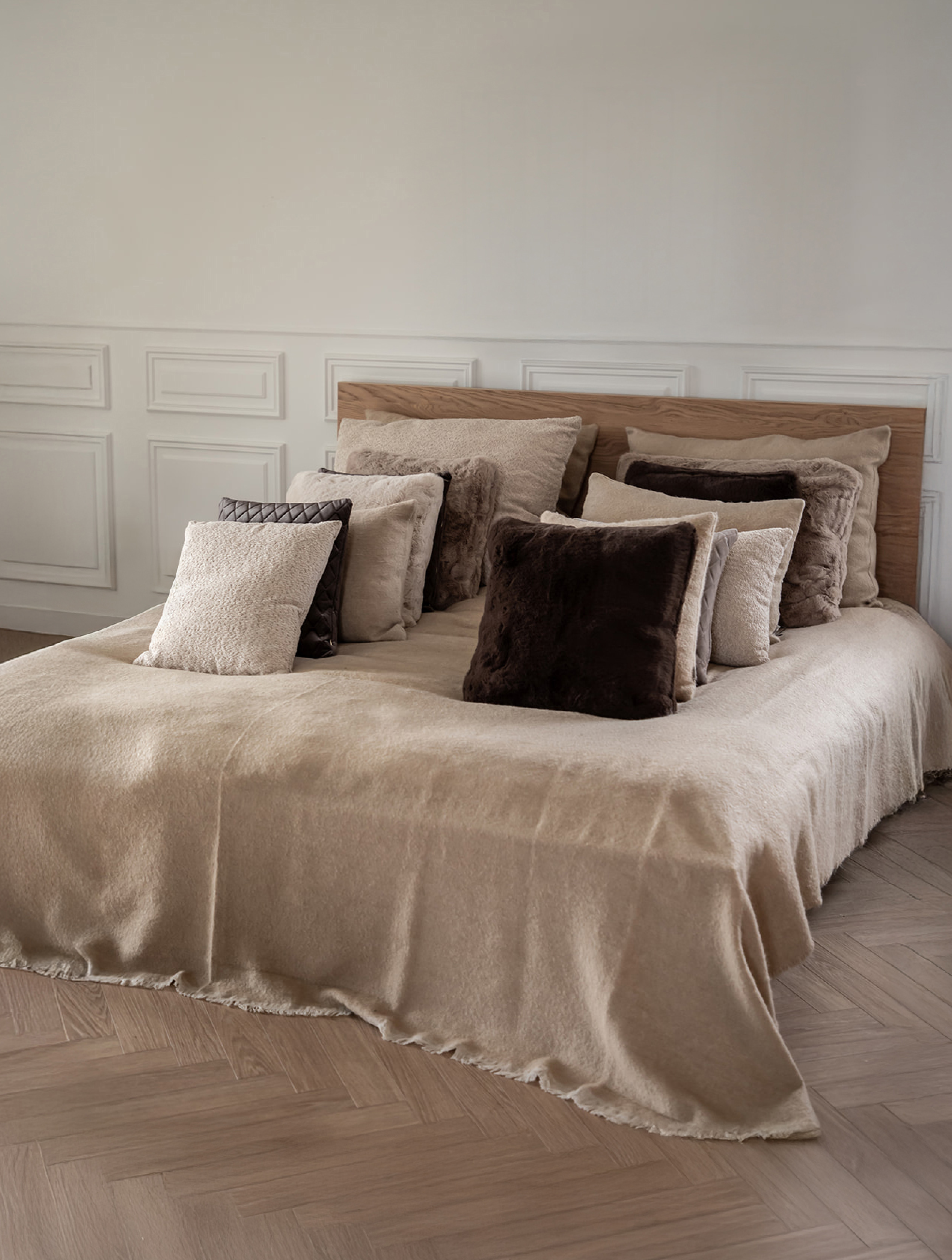 Et sengetæppe fuldender indretningen og giver sengen et velordnet udtryk. Vælg et, der matcher dit sengetøj, for en harmonisk helhed, eller gå efter en dybere farve for at skabe kontrast. Udover sin praktiske funktion tilfører sengetæppet struktur og kan fungere som et dekorativt element, der samler rummet. Det er en enkel måde at tilføre flere lag til sengen og skabe en mere indbydende helhed. Du kan nemt skifte udtrykket ved at justere på materialer, teksturer og farver gennem sæsonerne.