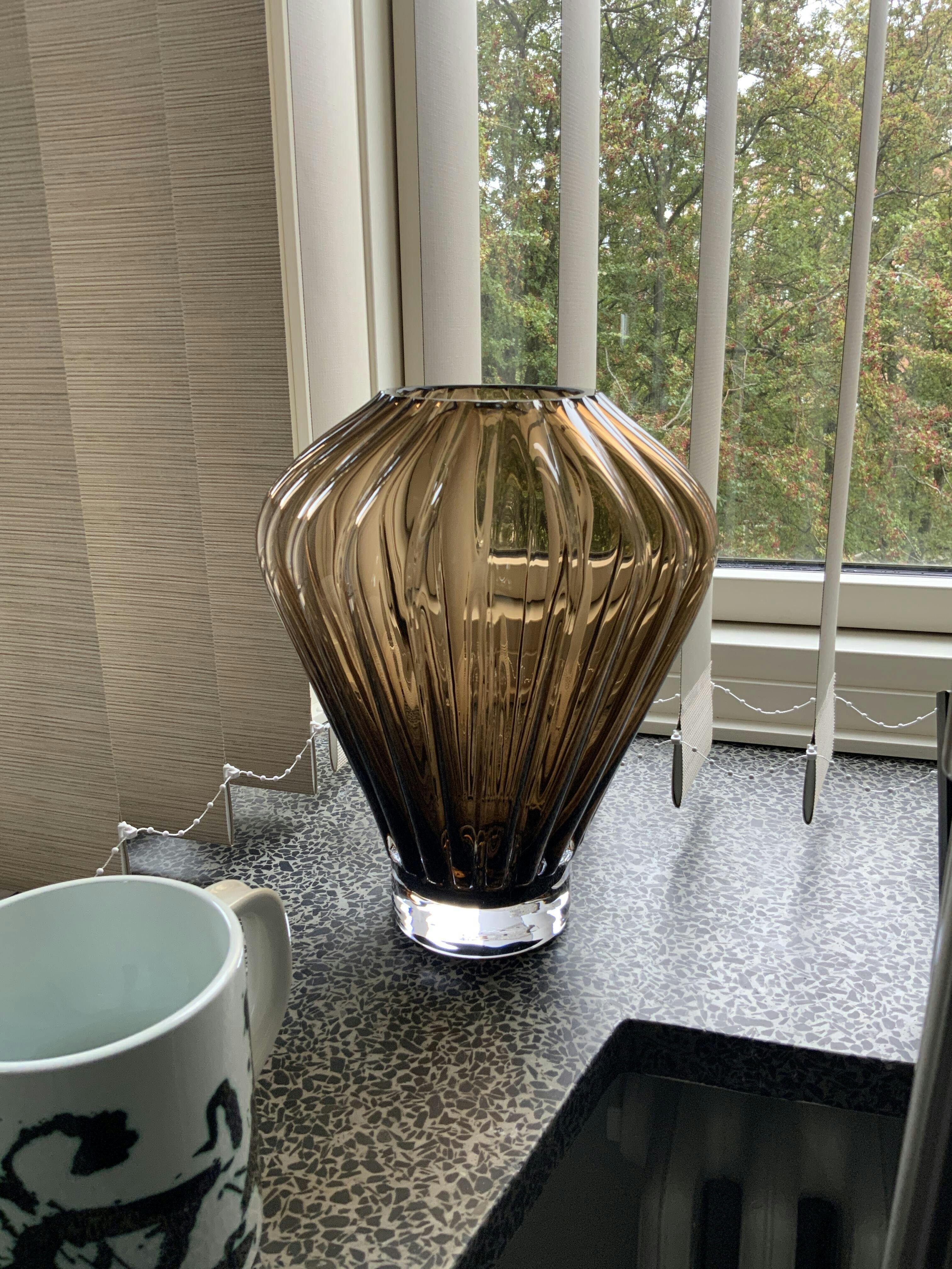 Evelyn vasen er med sit geometriske formsprog og moderne mønster designet til at være et centralt designobjekt i hjemmet – uanset blomstertrend eller sæson. Hver Evelyn vase er produceret og mundblæst i Europa. Den unikke mundblæsning gør, at ingen Evelyn vase er helt ens – små variationer og luftbobler er en naturlig del af charmen. Den mundblæste teknik er et gammelt håndværk, der er gået videre i generationer. Vi omfavner denne proces og arbejder tæt sammen med vores produktion for at kombinere vores moderne designs med deres traditionelle færdigheder. Serien fås i flere farver og størrelser, så du kan finde den variant, der passer bedst til dit hjem.