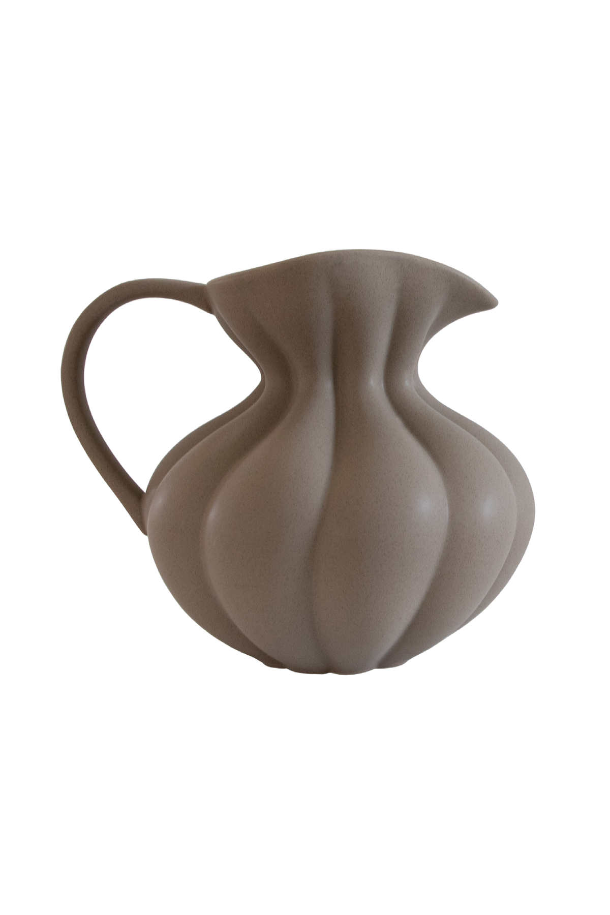 Designet er både funktionelt og æstetisk – ideel til servering af vand, saft eller som en dekorativ vase til dine yndlingsblomster. Den unikke glasur og de fine detaljer vidner om et omhyggeligt håndværk, hvor hver eneste kande er skabt med passion og præcision.