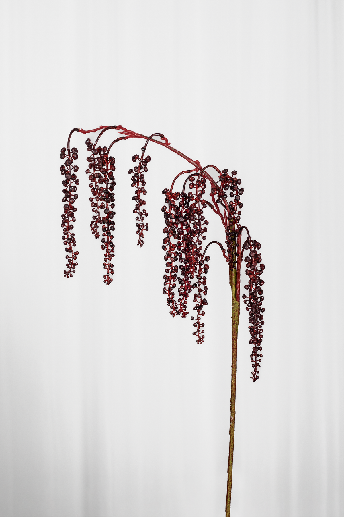 Tilfør dine blomsterarrangementer et dybt og dramatisk præg med denne bær gren i bordeaux. Den rige farve giver dybde og kontrast i buketter og dekorationer og kan både bruges som en smuk detalje alene eller i kombination med andre stilke for et unikt og luksuriøst udtryk. Vores naturtro, kunstige blomsterstilke er skabt med øje for detaljen, så de gengiver naturens skønhed på smukkeste vis. Med deres livagtige udtryk og tidløse skønhed er de et stilfuldt valg, der holder sæson efter sæson. Perfekte til at skabe smukke personlige buketter eller som enkle, dekorative stilke. Du kan også altid besøge os i Specktrum Store i Aarhus, hvor vi står klar til at hjælpe og vejlede dig med at sammensætte og binde en personlig buket, der passer til netop dine ønsker og behov.