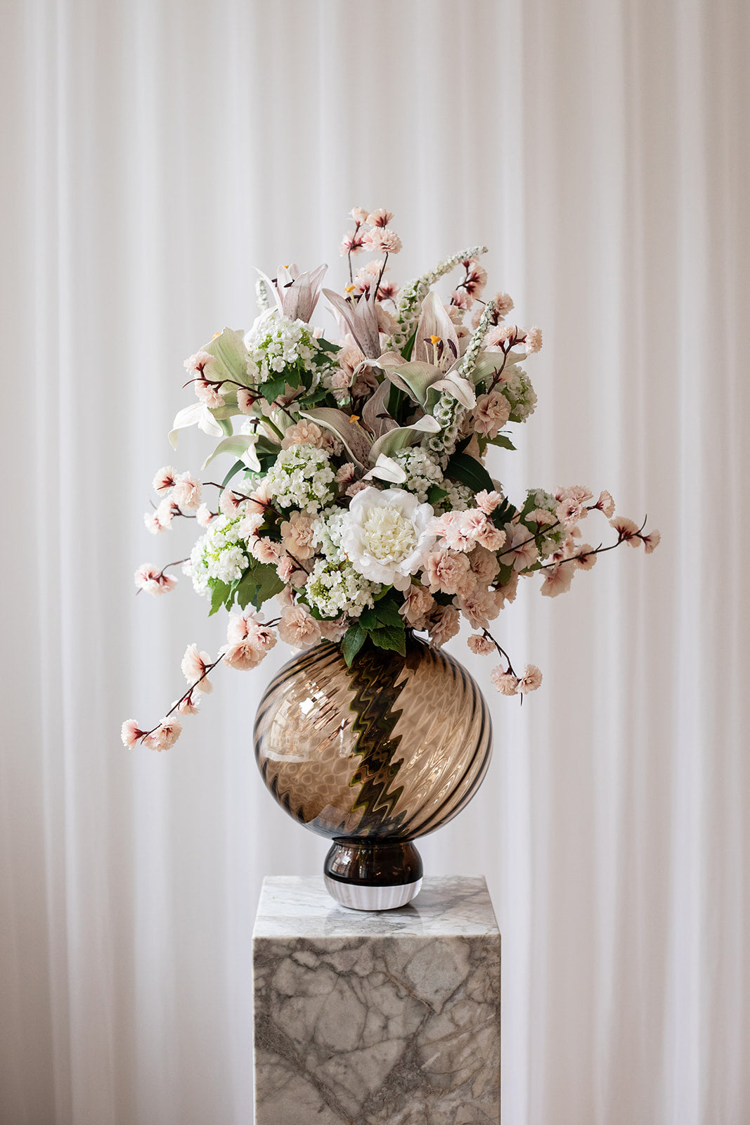 Alle vores buketter er professionelt færdigbundet af vores personale og fremstillet med naturtro kunstige blomster i høj kvalitet. De kræver ingen pleje eller vanding og holder sig smukke år efter år. Stilkene kan udskiftes, så du nemt kan variere udtrykket og opdatere din buket efter sæson eller personlig stil. Ved tilkøb af en vase kan du få klippet buketten til, så den passer perfekt. Du er altid velkommen til at kontakte os eller besøge vores butik i hjertet af Aarhus, hvor vi står klar til at hjælpe og rådgive dig med at finde den helt rigtige buket.