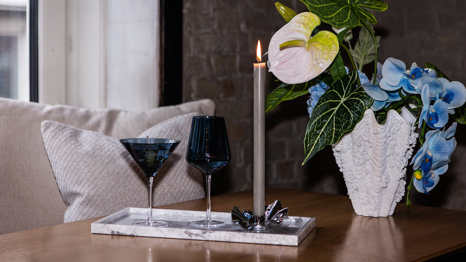 Når champagnen popper, og året går på hæld, handler det ikke kun om smagen, men også om oplevelsen. Et smukt glas, en lille detalje, et glimt af farve. Her får du vores bedste tips til, hvordan du kan bruge Specktrums glas, lysestager og bakker til at skabe en mindeværdig nytårsaften.