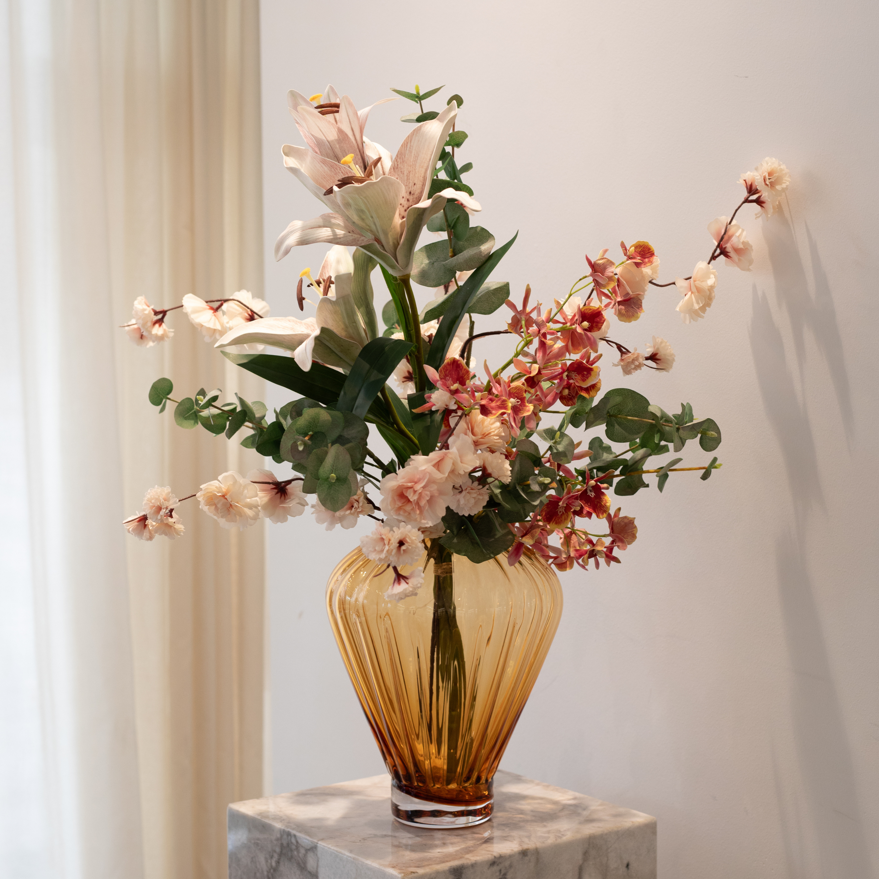 Each flower is crafted with a focus on realistic shapes, shades of color and textures. From the fine veins in the leaves to the shine of the petals, our flowers impressively mimic the beauty of nature. A great advantage of these lifelike flowers is their durability – the colors remain vibrant and the expression beautiful for many years to come.