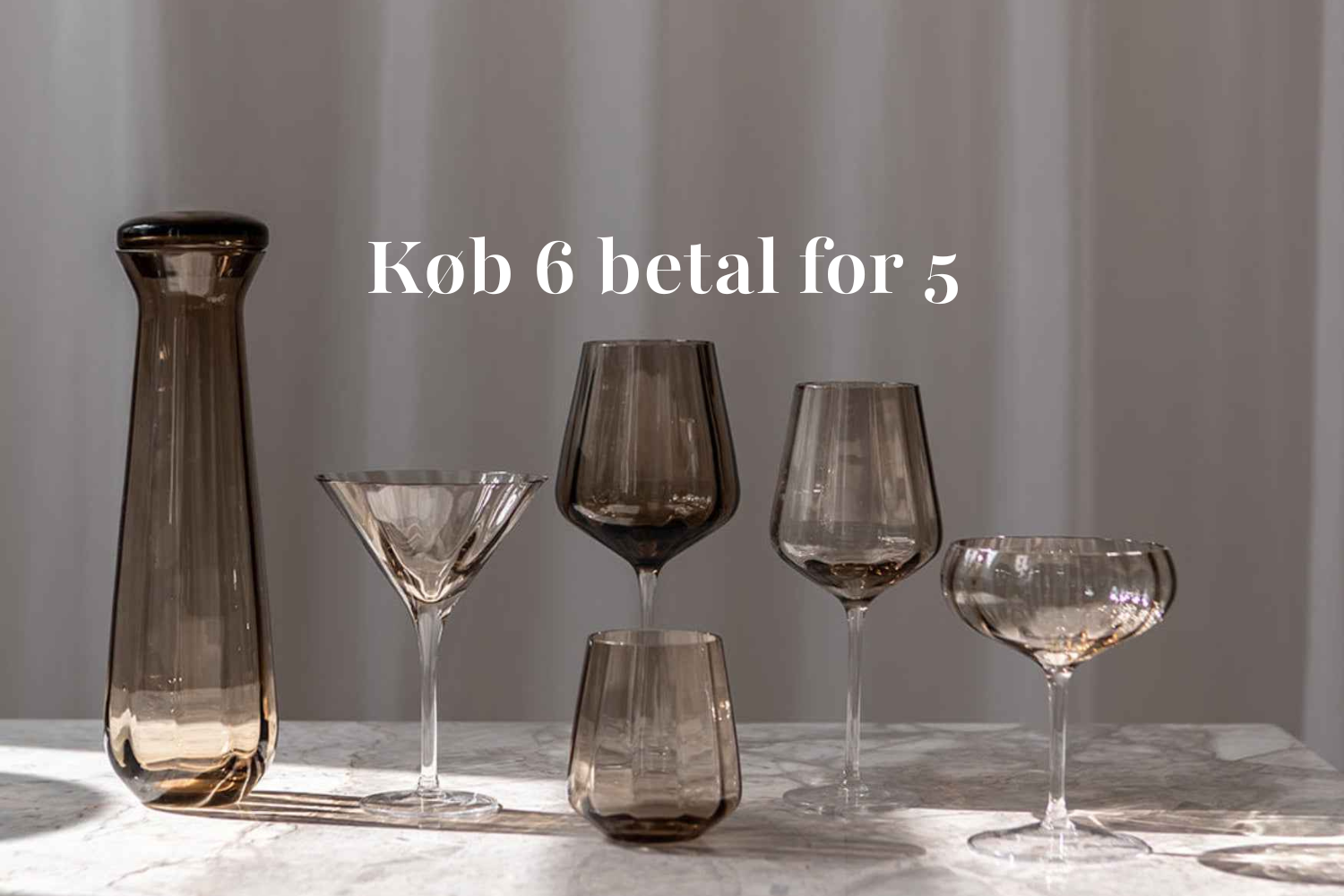 Når du vælger seks Meadow-glas, betaler du kun for fem. Serien er mundblæst på et af Europas ældste glaspusterier og findes i et bredt udvalg af farver og designs, så du kan skabe præcis det udtryk, der passer til dit hjem. Fordelen gør det muligt at bygge en personlig samling med glas, der både føles unikke og bringer glæde i brug – hver dag.
