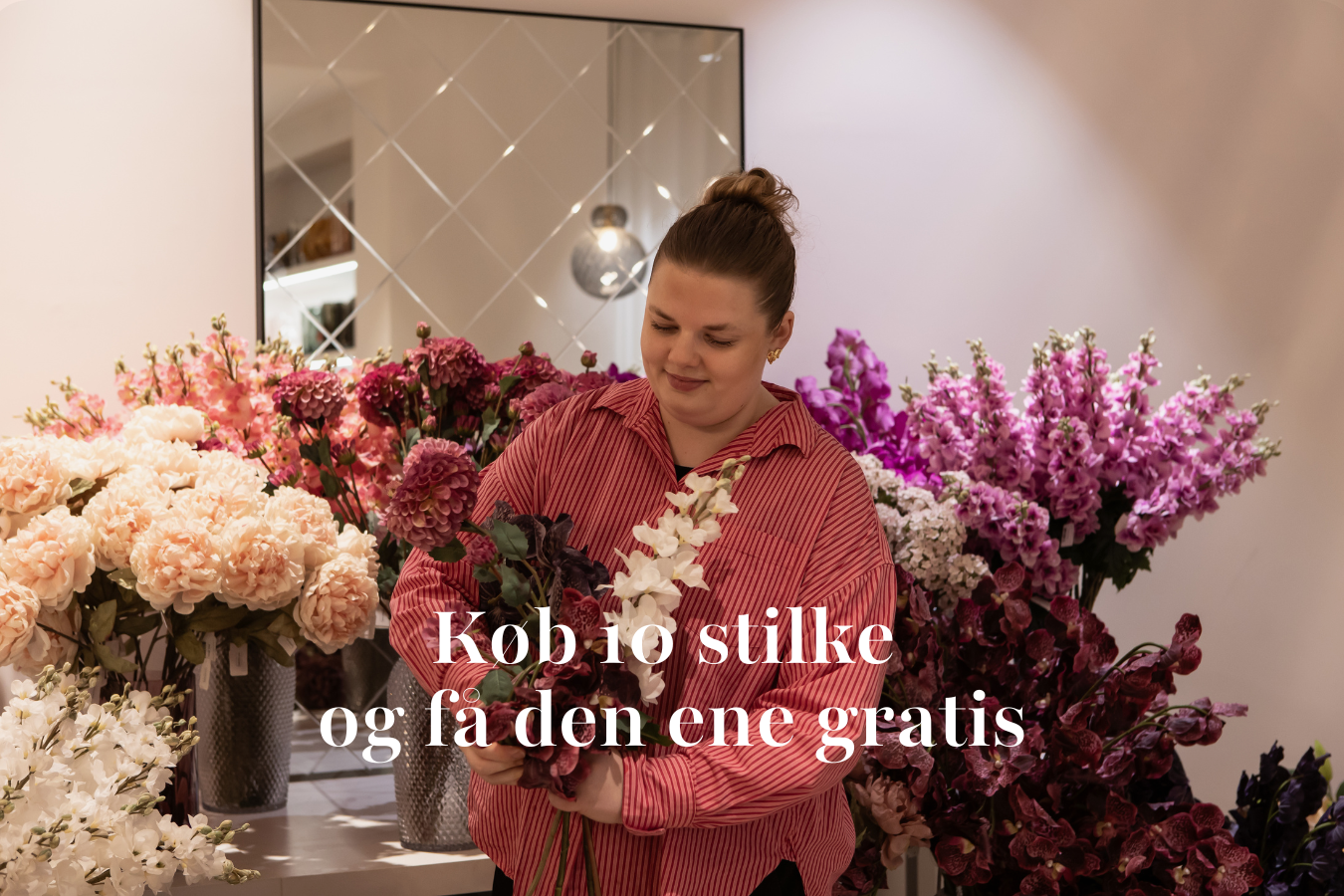 Når du bygger din buket hos Specktrum, giver vi den 10. stilk. Fordelen gør det muligt at skabe endnu mere fylde, farve og personlighed i dine arrangementer – uden at gå på kompromis med kvaliteten. Vores naturtro blomster er skabt til at holde og til at bringe glæde hver eneste dag, og den ekstra stilk giver dig lidt mere at arbejde med, når du sammensætter udtrykket, der passer til dit hjem.
