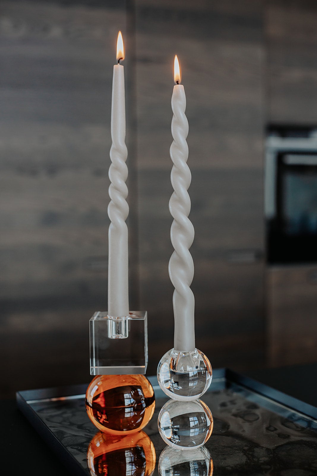 The Crystal Color Crush series is made of solid crystal glass. Therefore, make sure not to place the candle holder in direct sunlight or where the sun's rays can hit it, as crystal can act as a magnifying glass. Be sure not to burn the candle down to the crystal part - we recommend using our self-extinguishing twisted candle to ensure the flame does not damage the crystal candle holder.