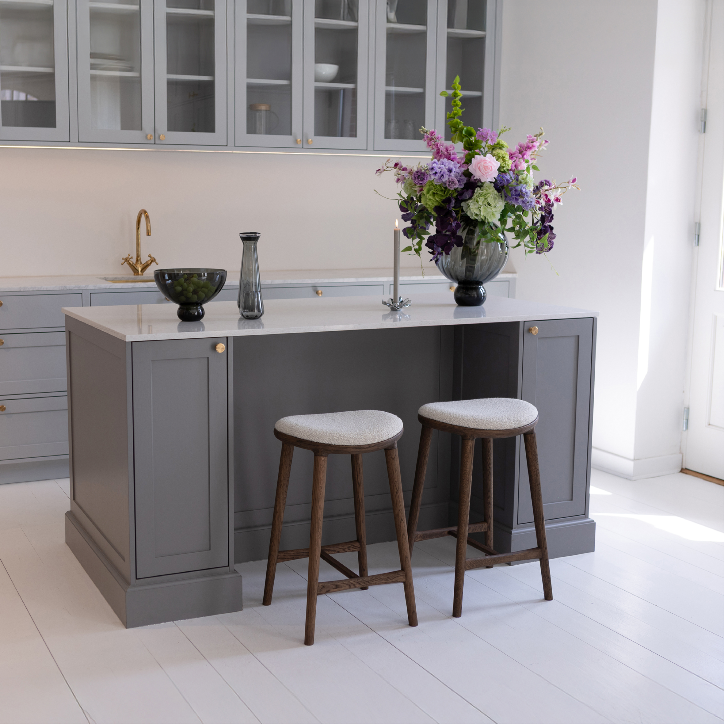 Aflang Amalia knag i zink betrukket med guld i et organisk og bølgende design.Badeværelse stylet med små Amalia knager i aflang med guld overflade.