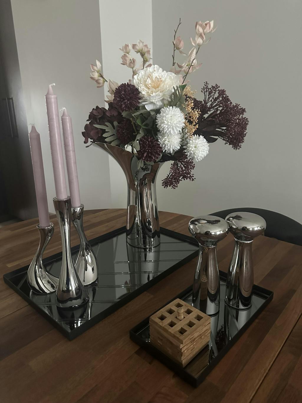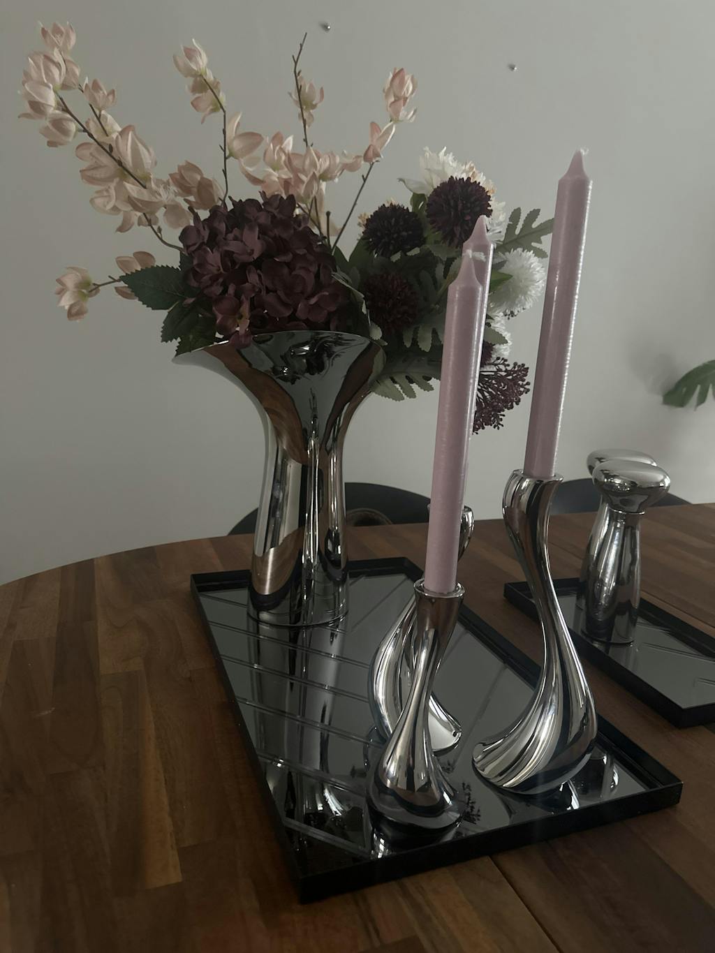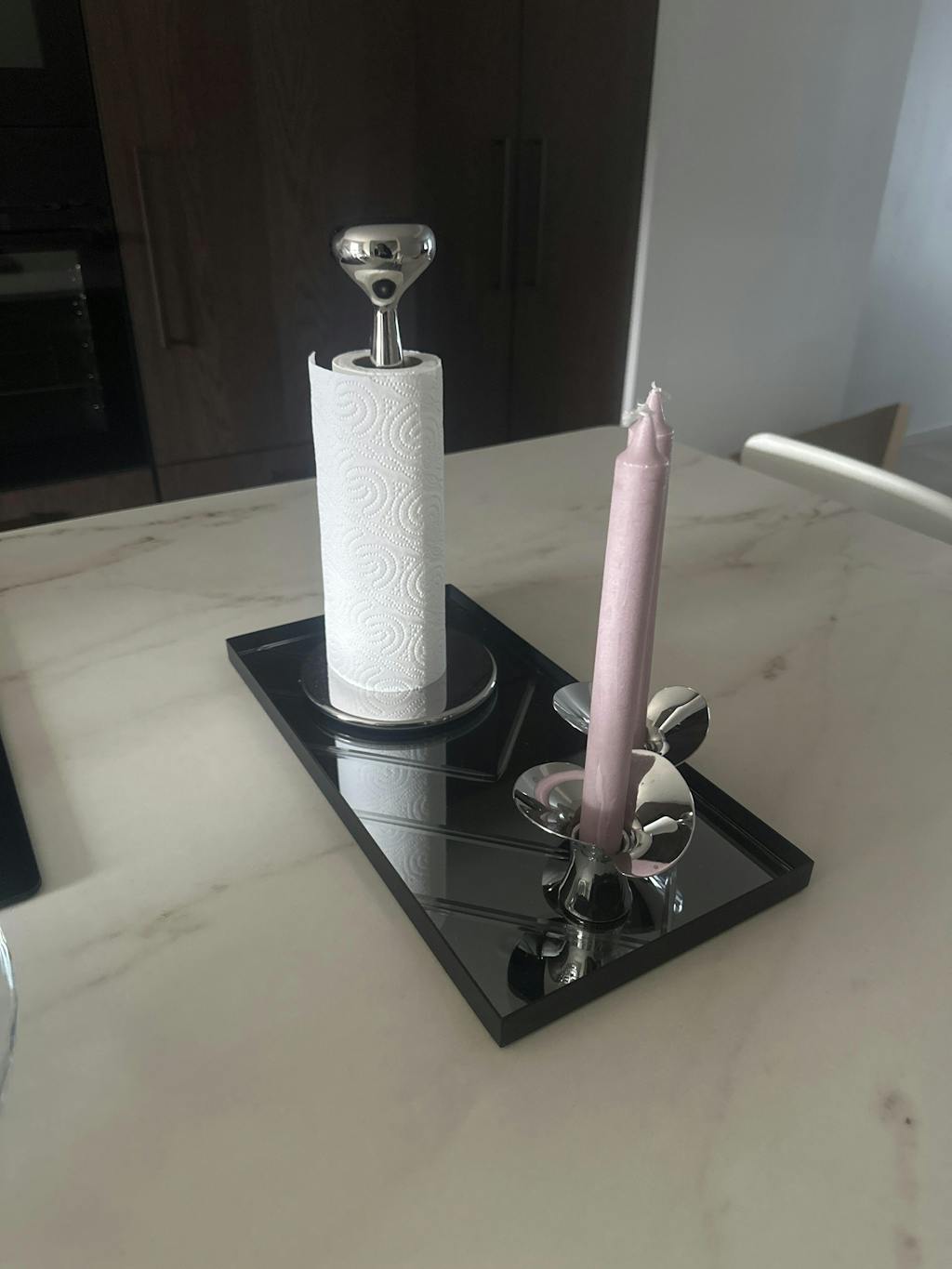 Den er det perfekte match til min store bakke på spisebordet, hvor den fungerer som en stilfuld base til mine salt- og peberkværne i sølv. Det skaber en fantastisk sammenhæng og ro for øjet.