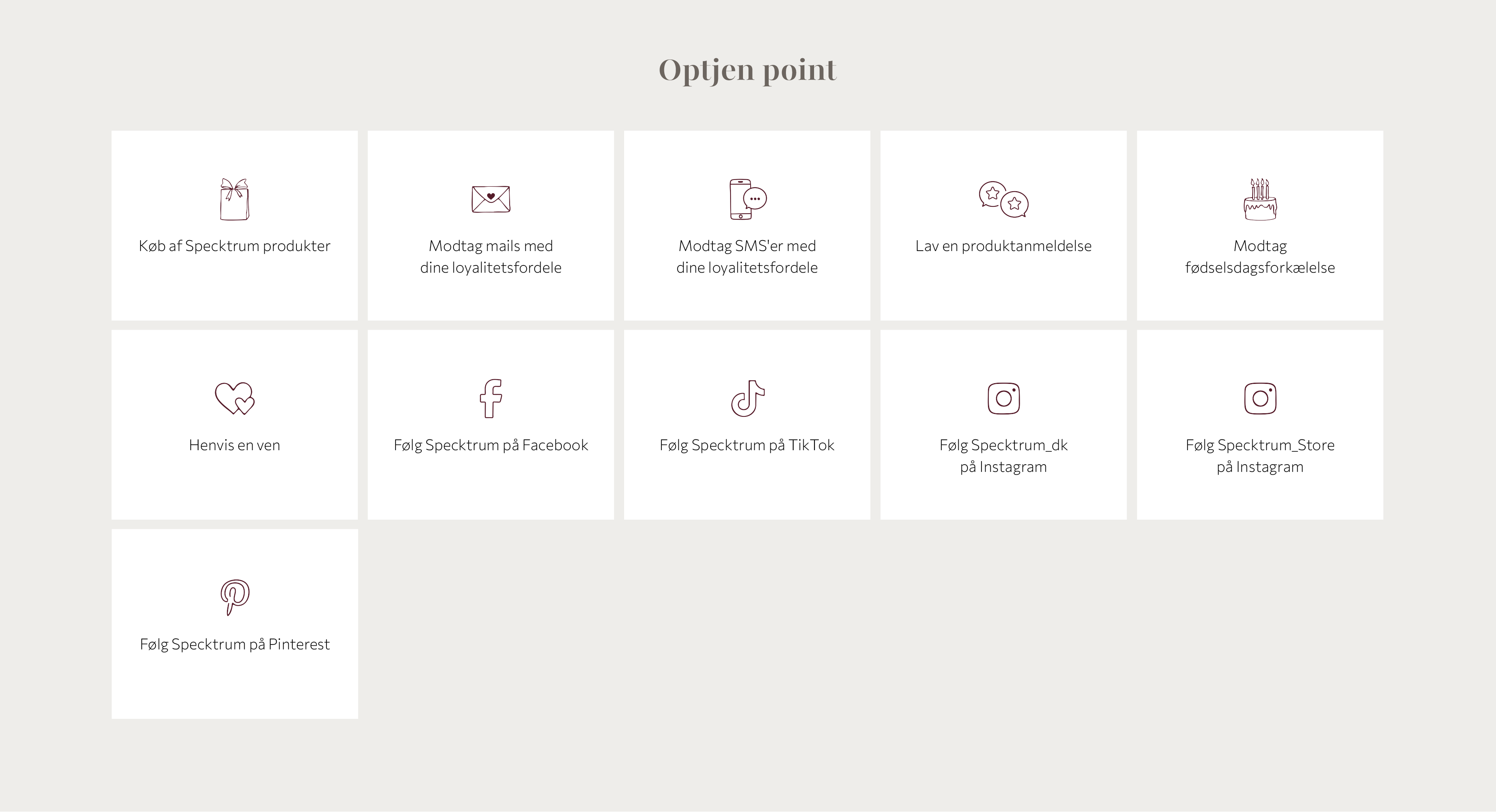 Du optjener point på alle dine køb - både online og i Specktrum butikken i Aarhus, på dine købs produktanmeldelser og når du følger os på sociale medier.