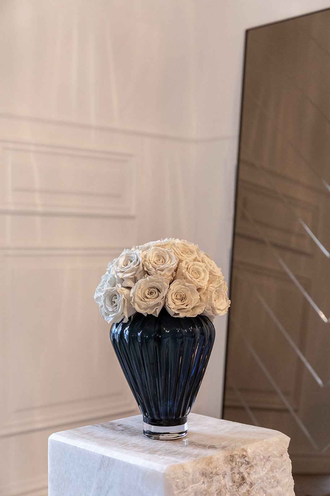 Evelyn vasen er med sit geometriske formsprog og moderne mønster designet til at være et centralt designobjekt i hjemmet – uanset blomstertrend eller sæson. Hver Evelyn vase er produceret og mundblæst i Europa. Den unikke mundblæsning gør, at ingen Evelyn vase er helt ens – små variationer og luftbobler er en naturlig del af charmen. Den mundblæste teknik er et gammelt håndværk, der er gået videre i generationer. Vi omfavner denne proces og arbejder tæt sammen med vores produktion for at kombinere vores moderne designs med deres traditionelle færdigheder. Serien fås i flere farver og størrelser, så du kan finde den variant, der passer bedst til dit hjem.