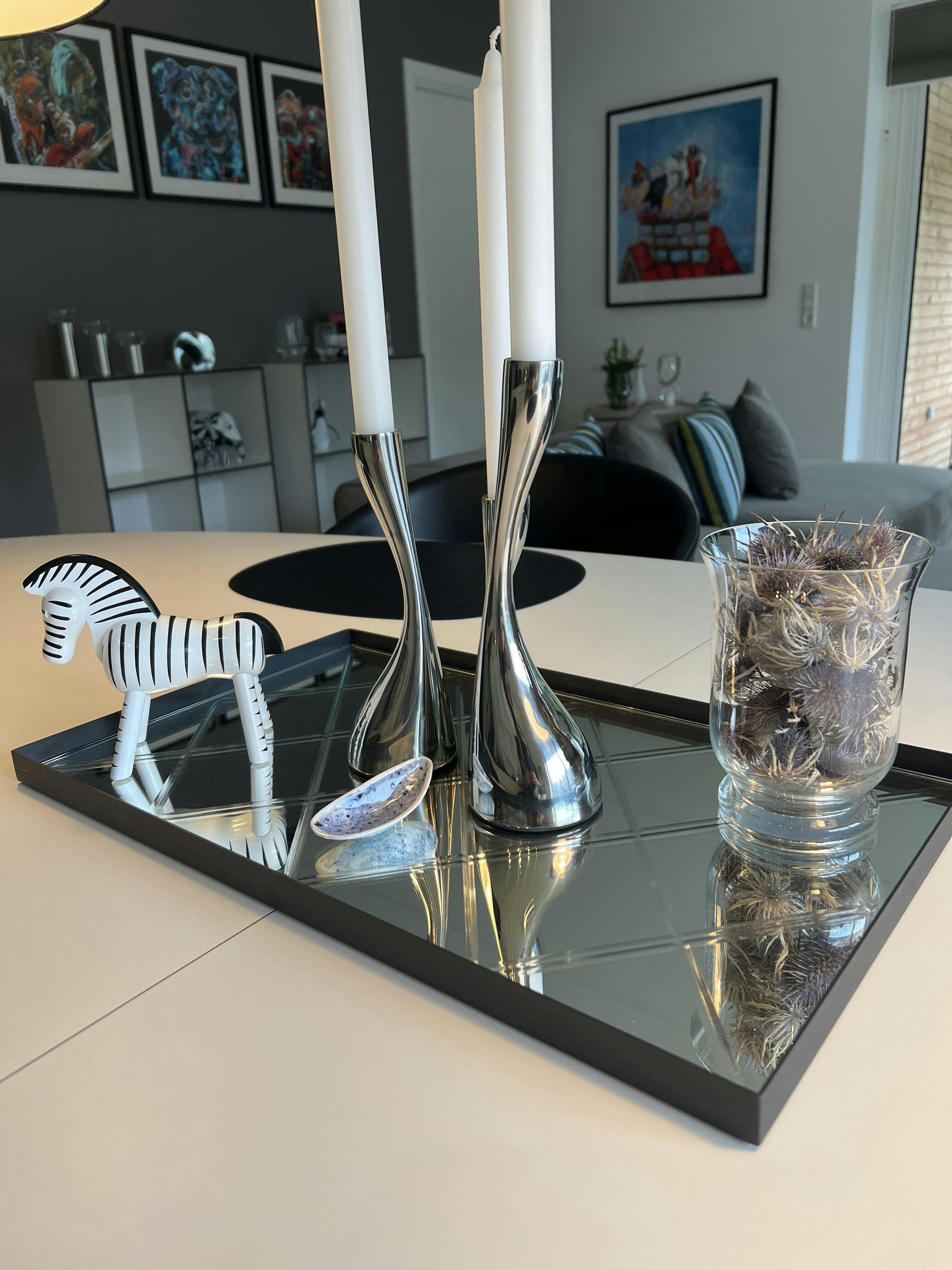 Harlequin bakken er en dekorativ spejlbakke, der passer ind i alle hjemmets rum. Det facetslebne spejl, inspireret af det klassiske harlequinmønster, kombineret med en sort metalramme, forener moderne og klassisk design. Skab dit eget personlige udtryk ved at kombinere flere bakker.