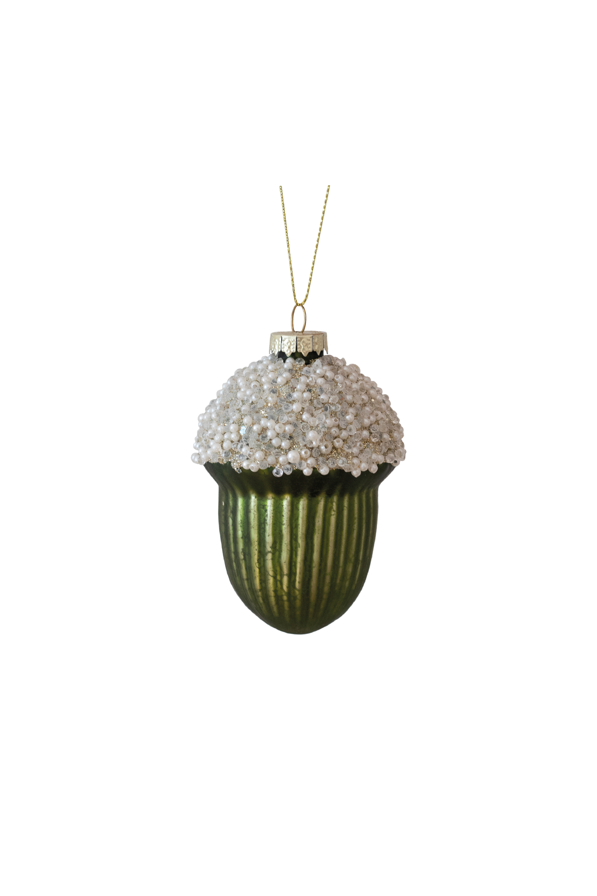 Lad Julekugle 11 i agernform med dybgrøn bund og perletop blive et iøjnefaldende element i din julepynt. Oplev hele vores julekugle-kollektion, et univers fyldt med glimtende detaljer, varme stemninger og design skabt til årets smukkeste øjeblikke. Kollektionen rummer alt fra moderne og minimalistiske designs til nostalgiske klassikere, som du kan mikse og matche for at skabe din helt egen julestemning. Brug julekuglerne på juletræet, som ophæng i vinduer eller som dekorative elementer i skåle og juledekorationer. Små magiske detaljer, der gør december helt særlig.