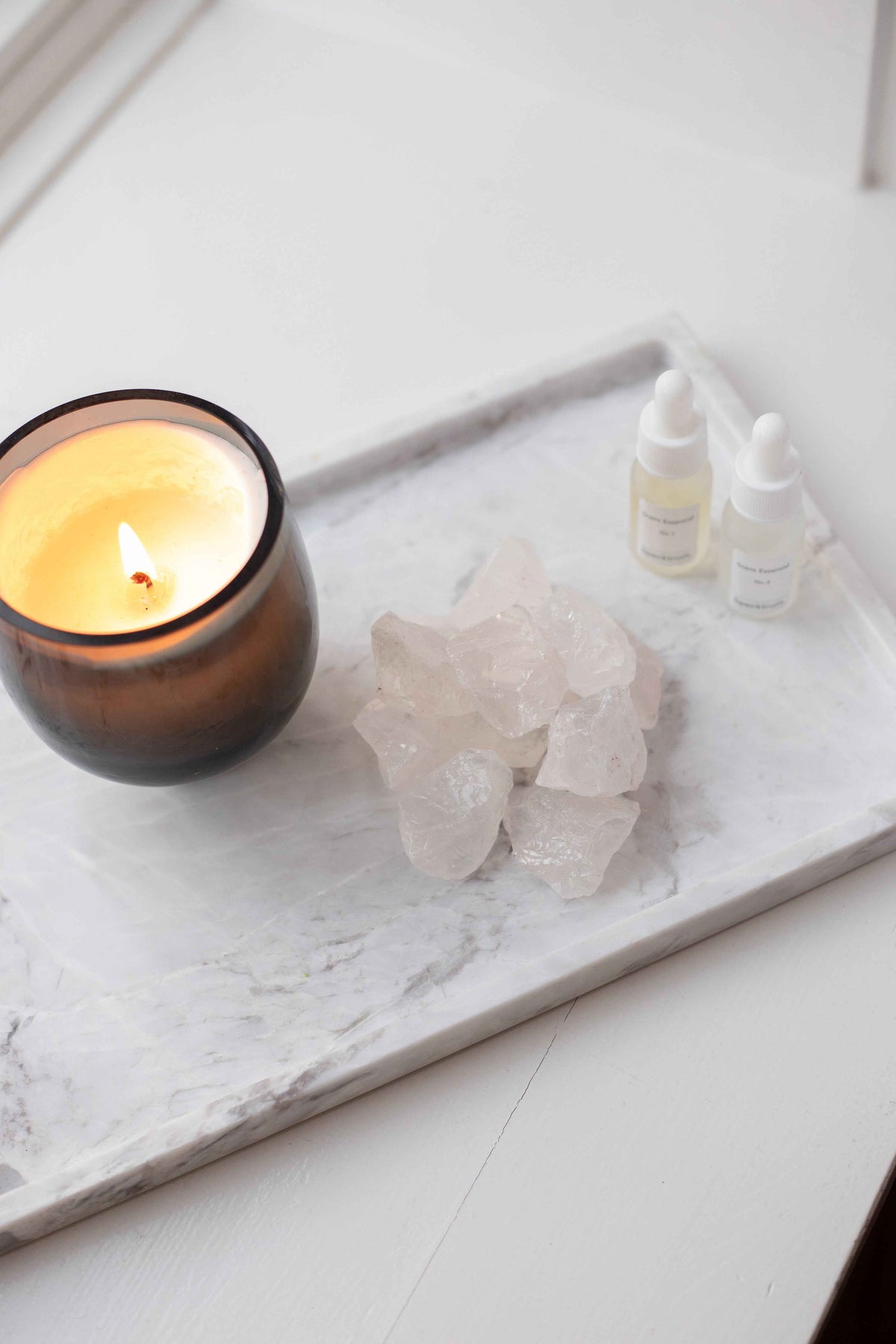 Dette shop look kombinerer krystalsten i hvid kvarts med Specktrum Scent duftlyset og skaber en sanselig helhed med fokus på ro og balance.